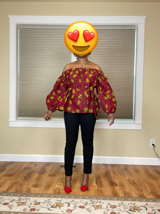 African Blouses For Women Fashion |African Blouses |African Women’s Top|African Women Clothing |African Off Shoulder Blouse|Red Blouse